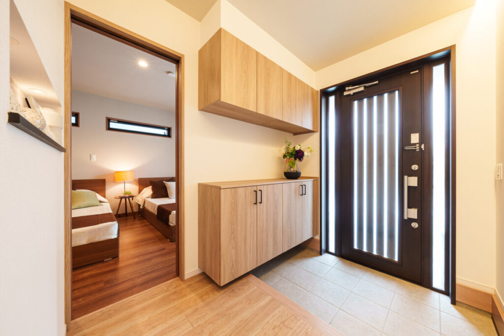 キッチンからセミランドリー、バスルームまでが一直線に繋がる「ストレート動線」。収納棚も備えているので、洗う・干す・しまうが最短距離で完結し、家事時間を劇的に短縮します。