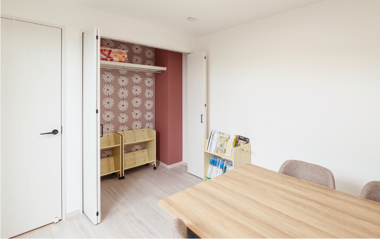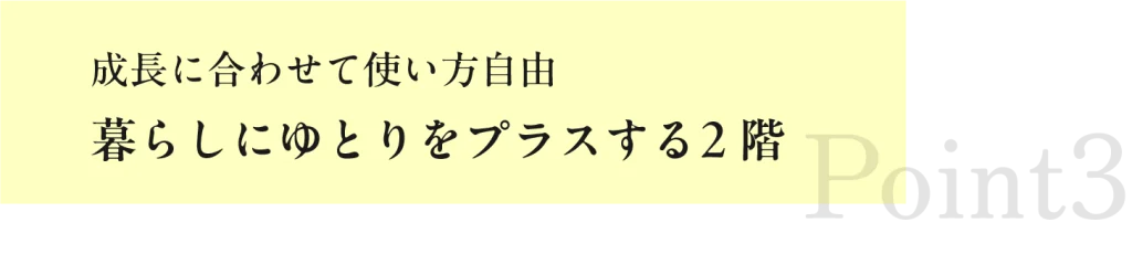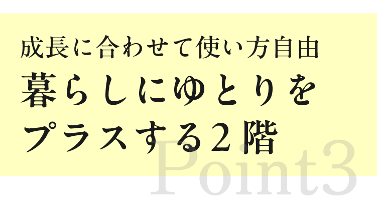 2階は、家族の成長や暮らしの変化に合わせて自由に使える“+αの空間”。今は子ども部屋として、家族の声が届く安心の距離感で。