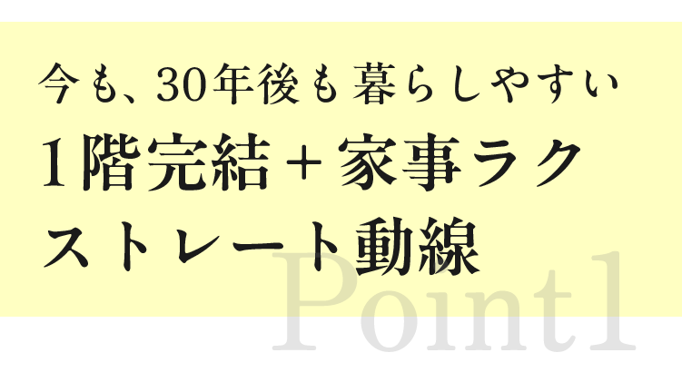 LDK、水回り、そして主寝室をすべて1階に配置。重い洗濯物を持って階段を上る必要も、将来階段の上り下りが辛くなる心配もありません。