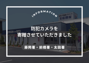 安心・安全な街づくり 「安心・安全な街づくりに役立ててもらおう」と、この度、太田署、前橋署、藤岡署に防犯カメラを20台ずつ寄贈させていただきました。 太田 前橋 […]