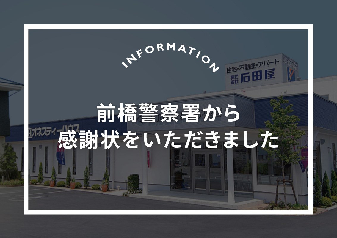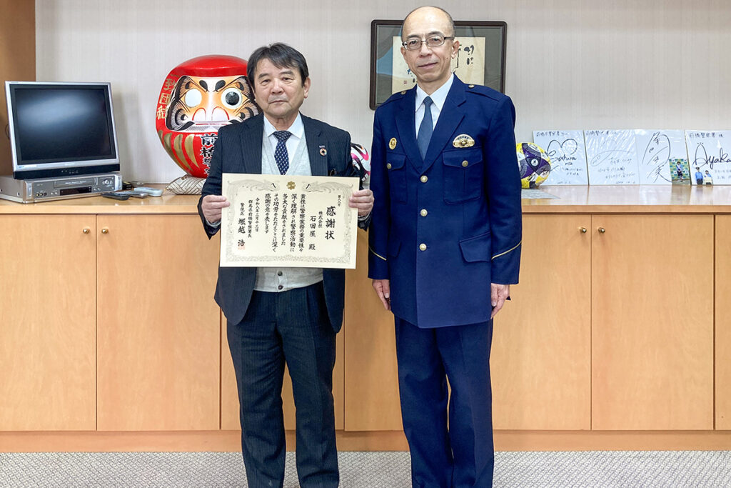 このたび石田屋は、石田屋は前橋警察署より、長年にわたる防犯対策への協力功労に対し、感謝状をいただきました。