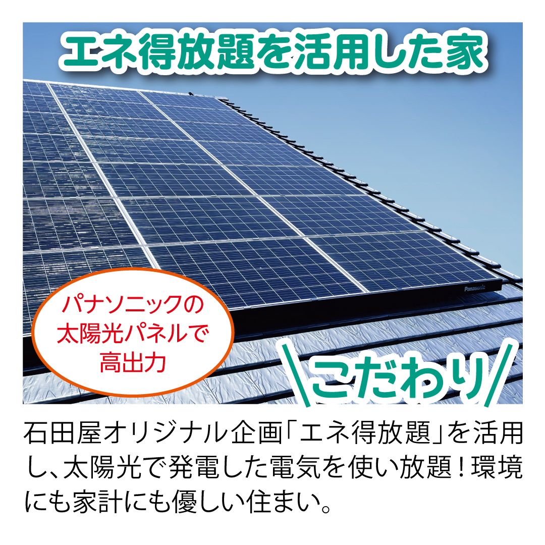 太陽光で発電した電気を使い放題の「エネ得放題」の住まいです。