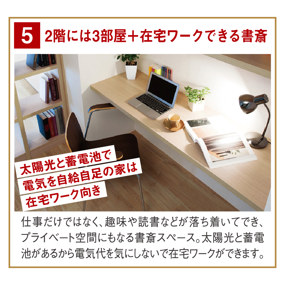 太陽光発電と蓄電池で電気を自給自足するから、電気代を気にせずに在宅ワークもできます!
