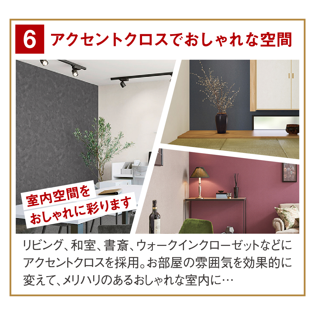 断熱効果&防音効果が高い、自然素材の断熱材セルローズファイバーを採用しており安心で快適な暮らしを叶えます。
