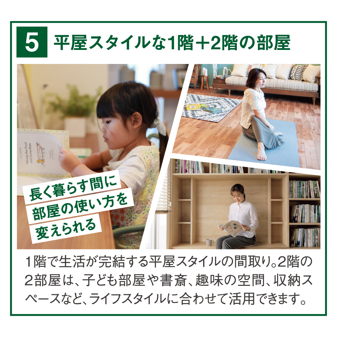 「ライフスタイルに合わせた平屋の住まい」 をご覧ください。