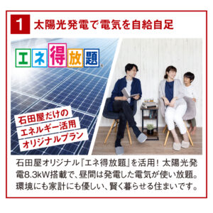石田屋オリジナルの「エネ得放題」で、高性能なPanasonic太陽光発電設備初期費用ゼロで設置。