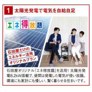 石田屋オリジナルの「エネ得放題」で、高性能なPanasonic太陽光発電設備初期費用ゼロで設置。