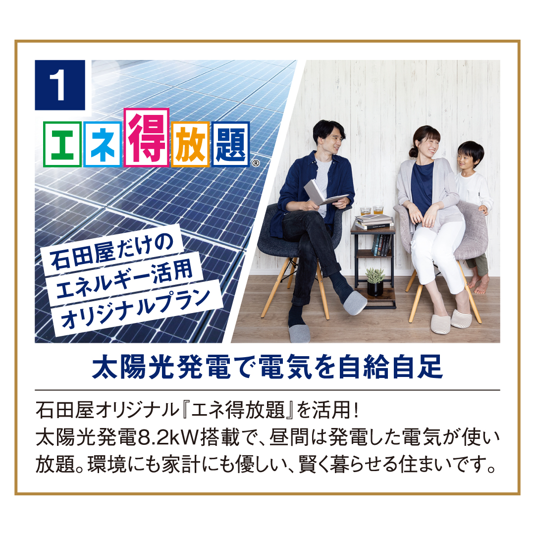 石田屋オリジナルの「エネ得放題」で、高性能なPanasonic太陽光発電設備を初期費用ゼロで設置。