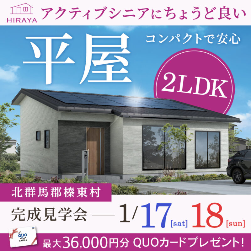 今回ご見学いただけるのは、アクティブシニアの暮らしにちょうど良いコンパクトな平屋の住まいです。