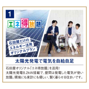 石田屋オリジナルの「エネ得放題」で、高性能なPanasonic太陽光発電設備を初期費用ゼロで設置。