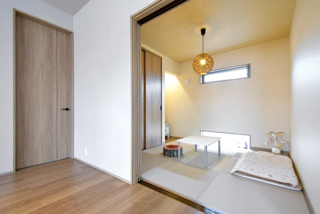 リビングに併設し、引き戸で開閉のできる和室は続き間として活用している。