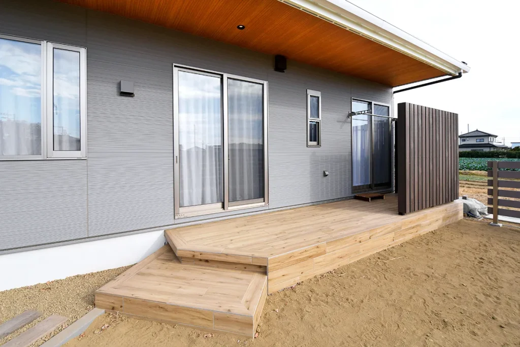 完成した住まいはモデルハウスをベースにした1階だけで暮らしが完結できる平屋スタイルの2階建て。
