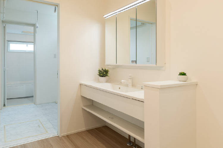 朝の混雑を解消する広々洗面