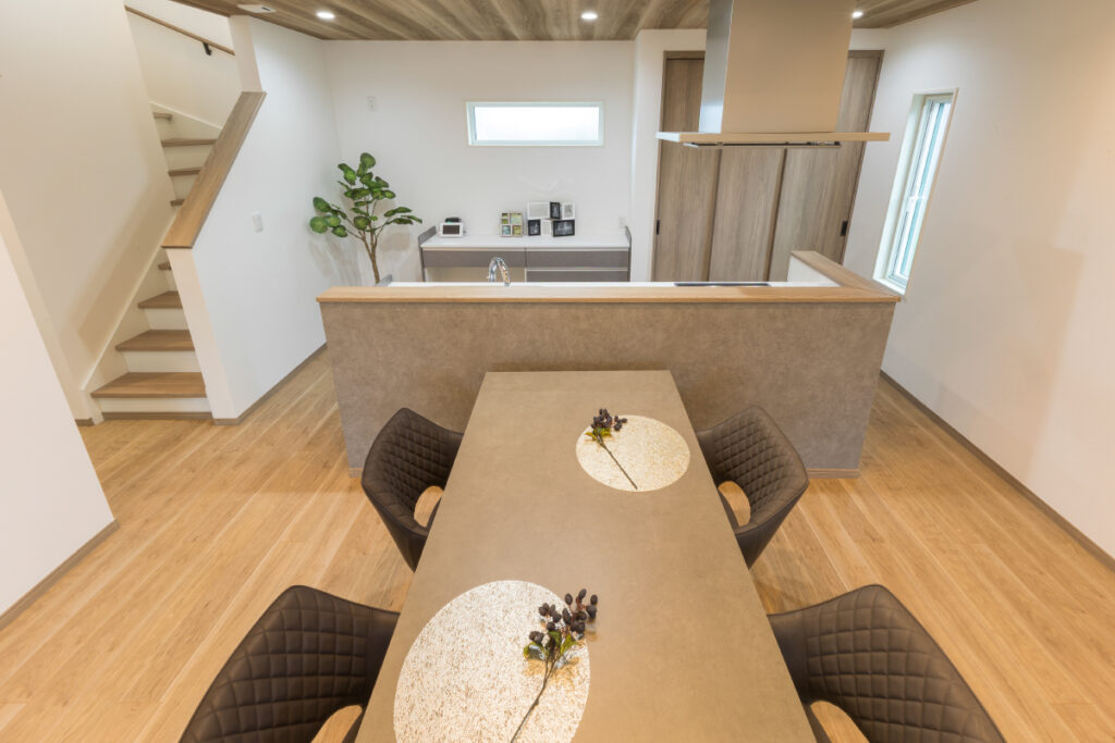 キッチン・洗面室・ホール・LDK・ファミリークローゼットがぐるりとつながるW回遊動線。暮らしやすく家事ラクな間取り
