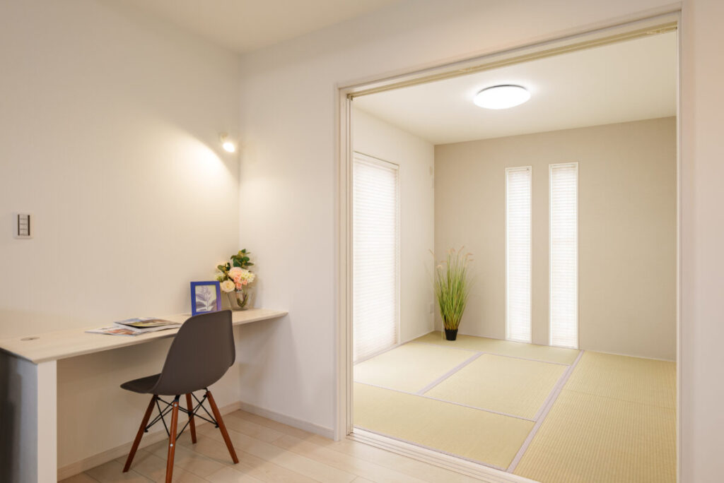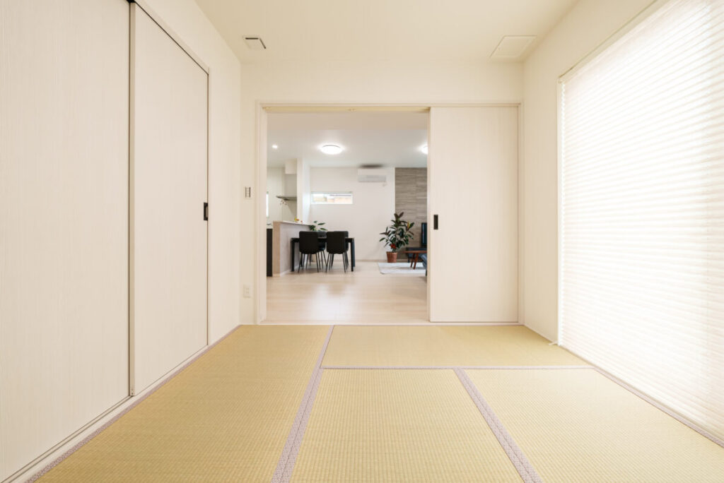 ゴロゴロくつろげる畳スペースは、引き戸で個室にも。押し入れも備えた収納力のある空間