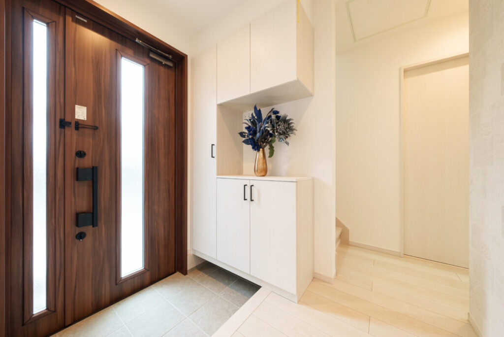 ホールが広く荷物の出し入れもスムーズ。キッチンへの動線も良く、毎日の生活が快適になる空間