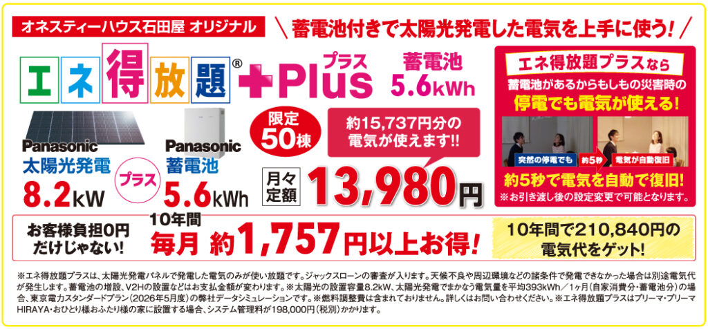 太陽光と蓄電池によるエネルギー住宅を特別価格でご提供します!