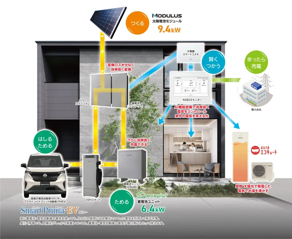 発電能力1.2倍!! 太陽光で創った電気を、蓄電池と電気自動車へ同時に充電。