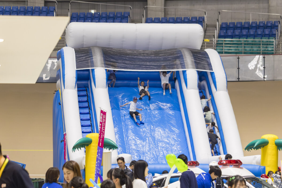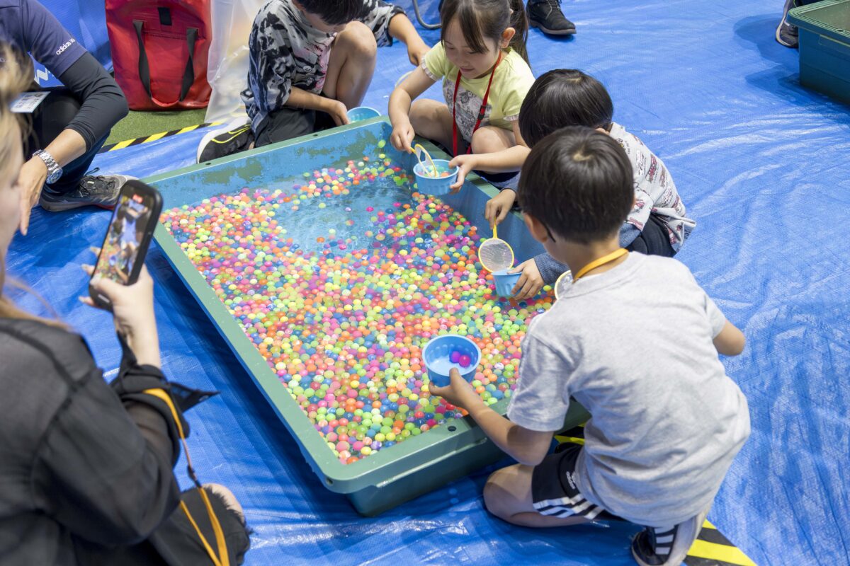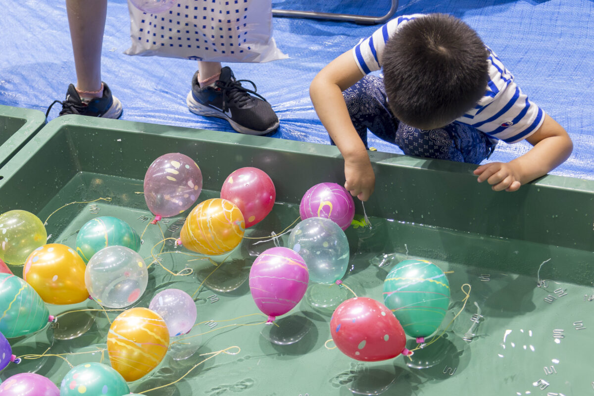 お子さまたちの瞳が輝くすべり台やスーパーボールすくいに、大人も思わず笑顔に。