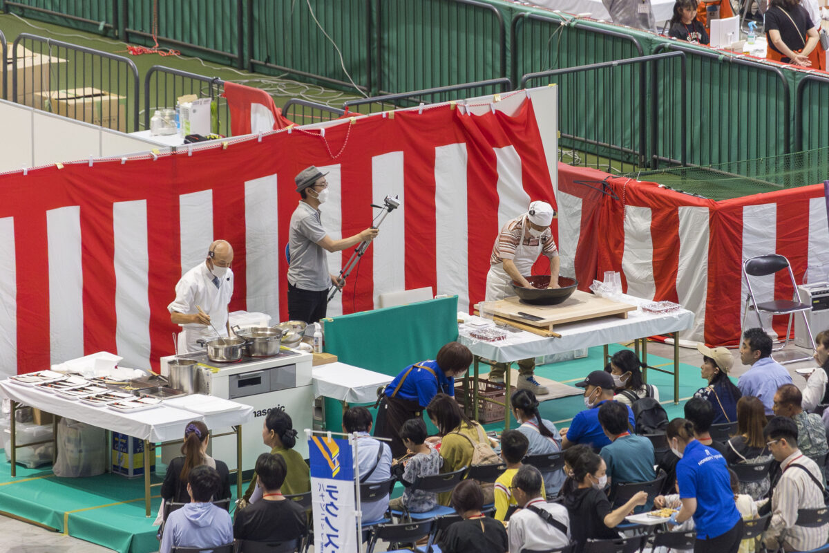 会場の賑やかな雰囲気とともに、「おかげさまで120年」というテーマに込めた想いや、会長・社長のコメントをご紹介いただきました。