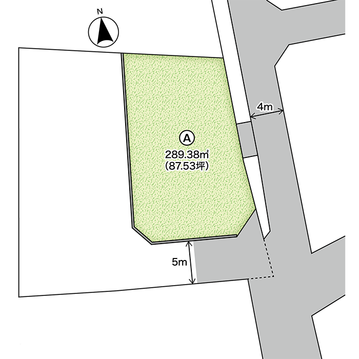 東南角地・日当たり良好、敷地87坪のゆとりある住宅用地