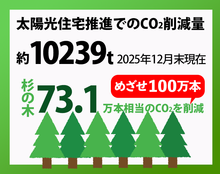 ※太陽光発電協会表示ガイドライン(2020年度)に基づいて計算。 ※成長したスギ1本(樹齢50年)が1年間に吸収するCO₂量=14㎏ (環境省・林野省資料より算出)