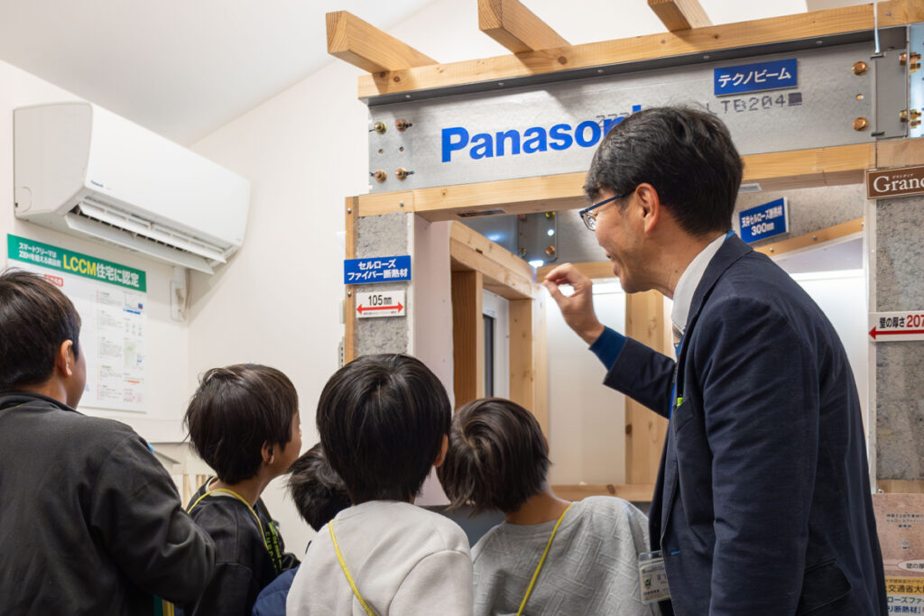 見学中は、「お家ってどうやってできているの?」といった家の性能や構造に関する質問から、「月の売り上げはどれくらいですか!?」という大人顔負けの鋭い質問まで飛び出し、スタッフが思わずタジタジになってしまう場面も!