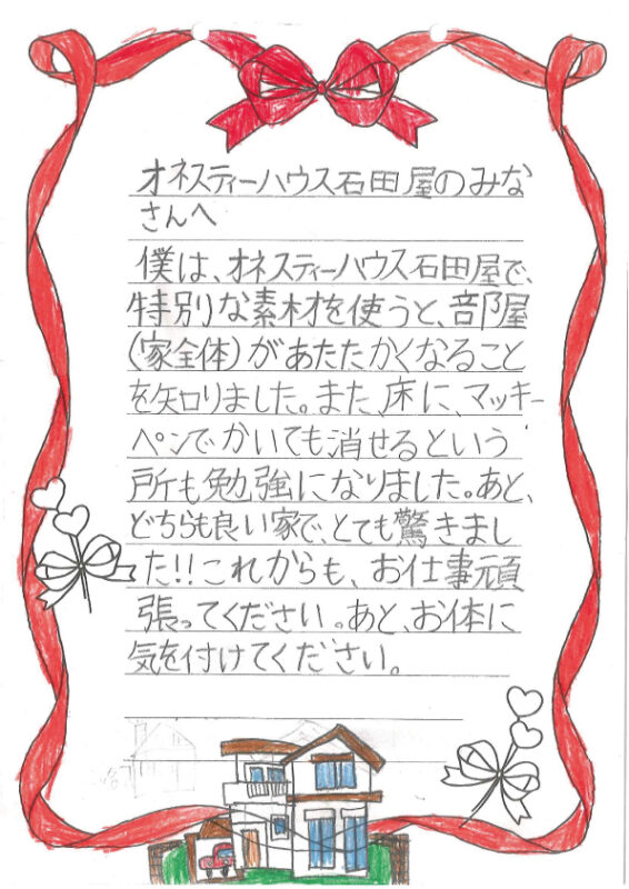 元気な小学生の皆さんと触れ合い、私たちも「これからも安全で快適な、素晴らしいお家づくりを頑張ろう!」と改めて気が引き締まる思いでした。