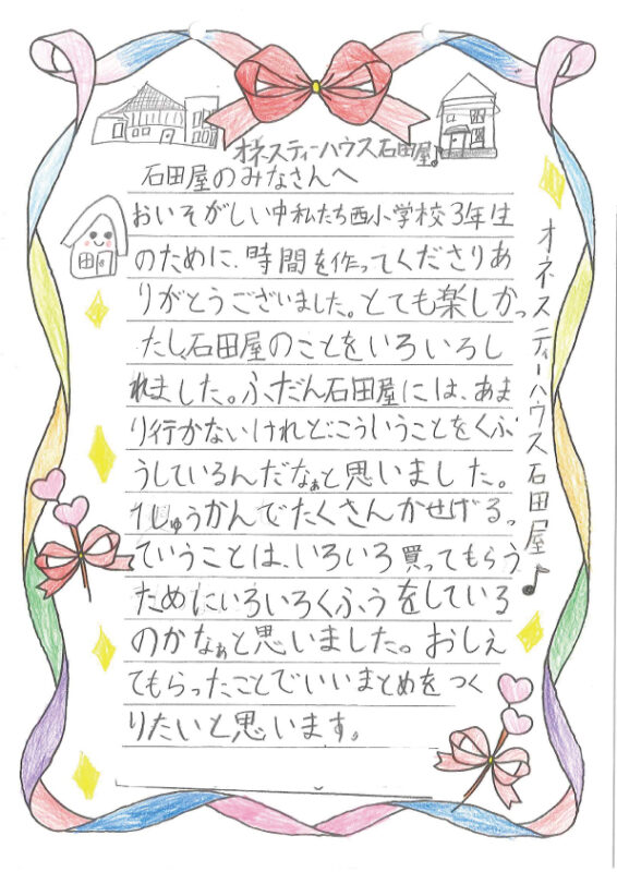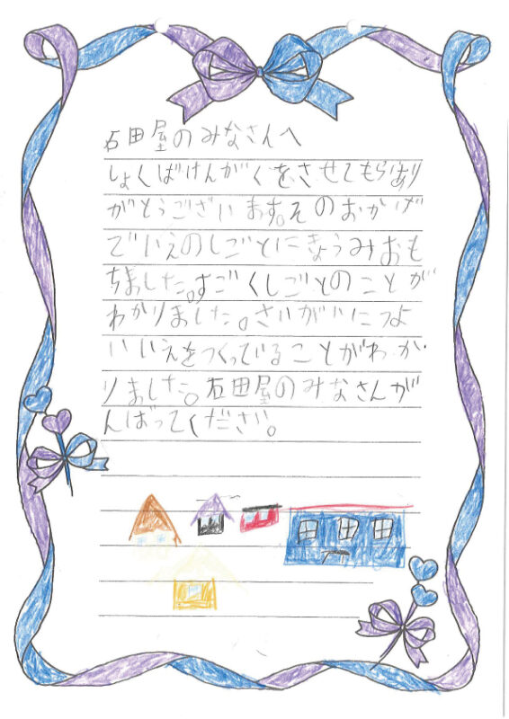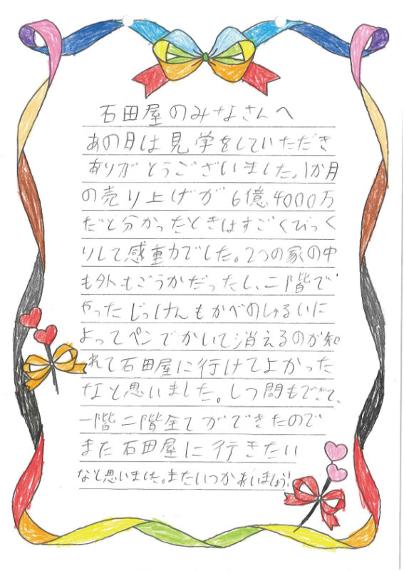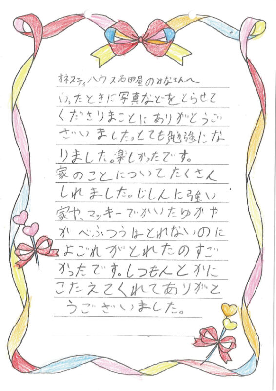 後日、見学に来てくれた皆さんからとっても素敵なお手紙が届きました!