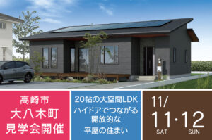 ※このイベントは終了いたしましたので、地図・チラシは非公開となっております。 【開催日】 11月18日(土)・19日(日)【開催時間】 10:00~17:00【開催場所】 高崎市並榎町(高崎警察署近く) 見学会を予約する […]